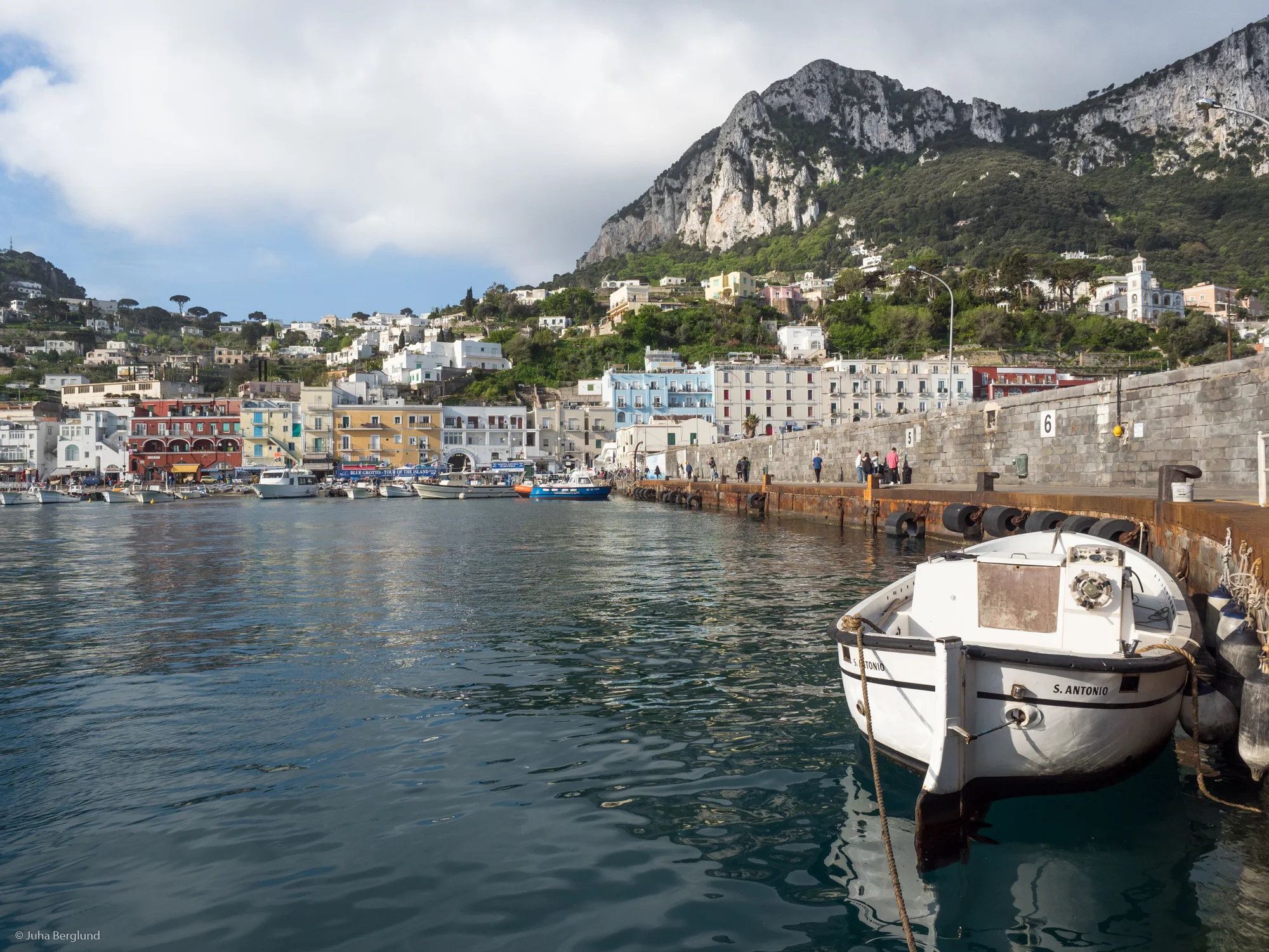 Marina Grande of Capri island in front, Sorrentine Peninsula in the distance.